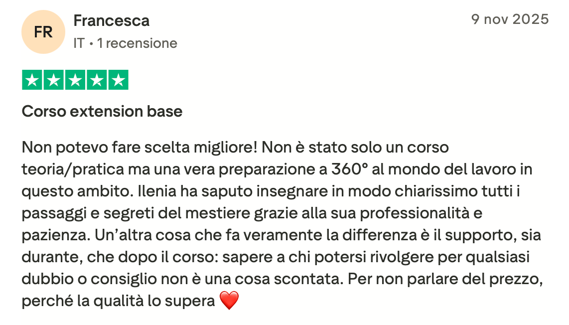 E mentre tu continui a rimandare, vedi altre lash maker che crescono, si aggiornano e riescono a rendere questa professione più stabile e più redditizia.