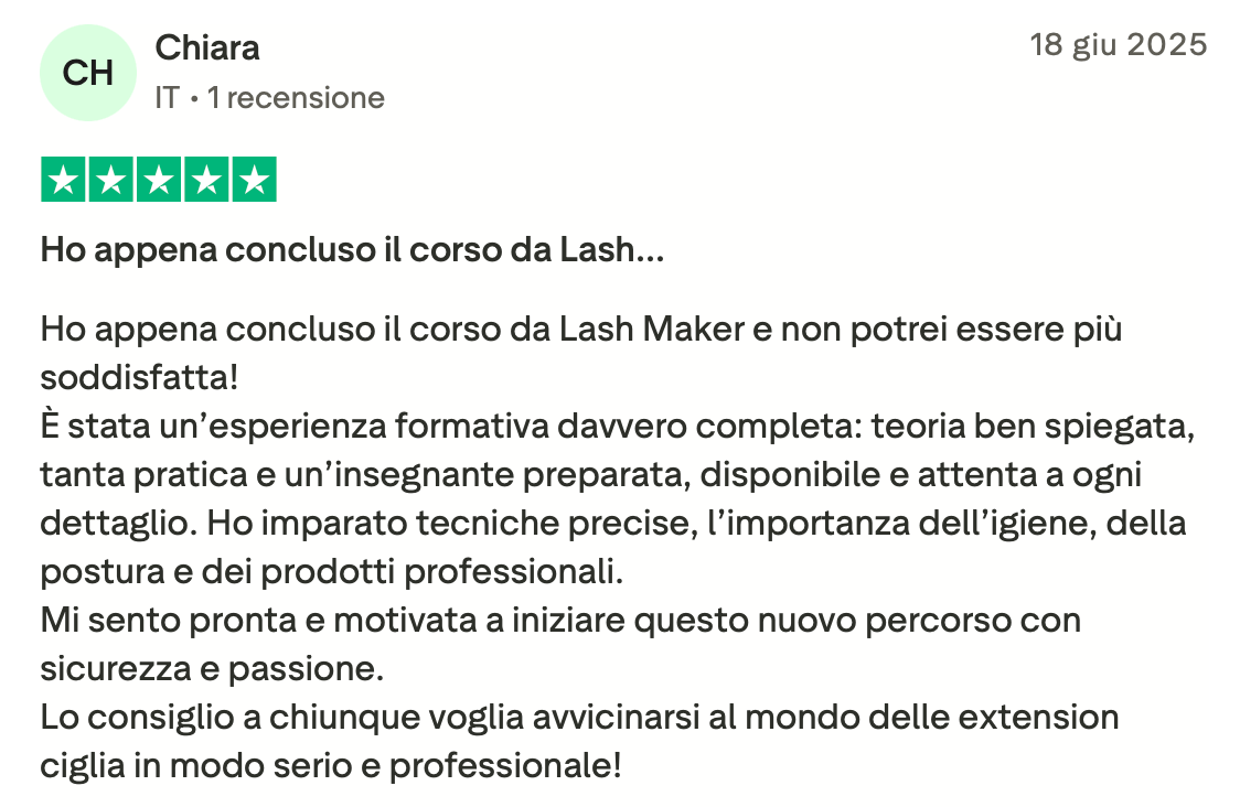 Sono una lash maker e formatrice, e Lash Up nasce con un obiettivo molto chiaro: aiutare le lash maker a diventare più sicure, più preparate e più libere nella loro professione.
